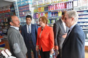 Esnaf ziyaretinde adaylara, partililer eşlik etti.