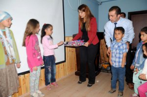 Hükümet Konağı bahçesinde, Atatürk Anıtına çelenk sunulmasıyla başlayan tören, daha sonra Cumhuriyet ilkokulunda devam etti.