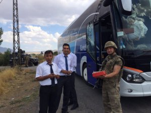 Güroymak Jandarma Komutanlığı ekipleri, Kurban Bayramı nedeniyle sürücü ve yolculara şeker ikram etti.