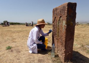 Muhtelif tiplerde 8 bin mezar taşının bulunduğu Selçuklu Meydan Mezarlığı'nda Yüzüncü Yıl Üniversitesi (YYÜ) Edebiyat Fakültesi Sanat Tarihi Bölümü Başkanı Prof. Dr. Recai Karahan başkanlığında yürütülen çalışmalarında yosun ve likenlerden temizlenen mezar taşları, tarihe ışık tutuyor.