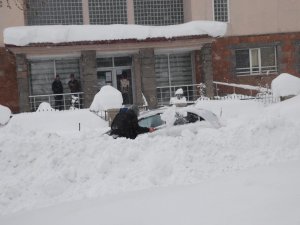 Günlerdir süren kar yağışı nedeniyle kar kalınlığının yer yer bir metreyi geçtiği ilçede, araçları kar içinde kalan sürücüler büyük zorluk yaşadı.