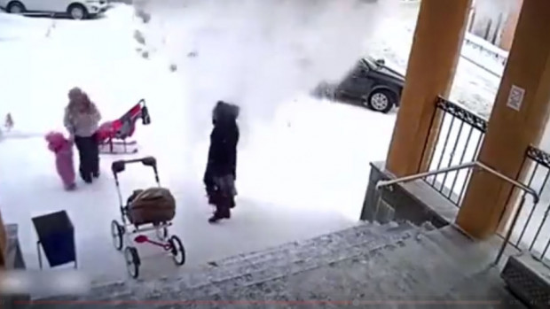 Çatıdaki kar böyle düştü, biri çocuk 3 kişi ölümden döndü. Rusya’nın Murmansk Oblastında yaşanan olayda, bir evin önünde sohbet eden 2 kadınla, kadınların yanındaki çocuğun üzerine çatıdaki dev kar kütlesi düştü. Büyük paniğe yol açan olayda neyse ki can kaybı yaşanmadı. Olayı hafif yaralanmayla atlatan 3 kişi, hastanede tedavi edildikten sonra taburcu oldu.(İHA)