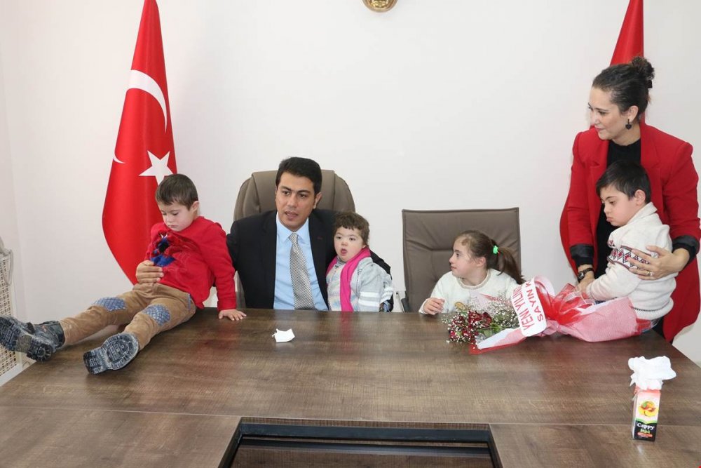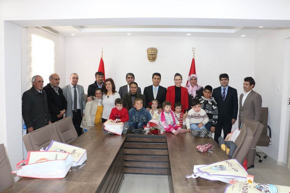 Özel Diyadin Özel Eğitim ve Rehabilitasyon Merkezinde eğitim gören özel çocuklar, aileleri, eğitim merkezi müdürü Azmi BERKAN ve eğitimcileri ile Sayın Olgun ÖNER’i makamında ziyarete geldiler. Kaymakam/Belediye Başkan V. Olgun ÖNER ve Eşi Gülcihan ÖNER tarafından karşılanan misafirler ile tek tek ilgilenildi.