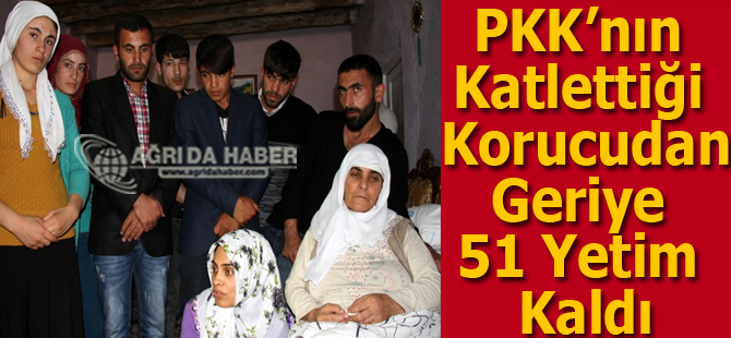 Ağrı'nın Doğubayazıt ilçesindeki Tendürek Dağı'nda bulunan korucu noktalarına geçen hafta PKK'lı teröristlerce düzenlenen saldırıda şehit olan biri emekli 8 köy korucusundan geriye 8 gözü yaşlı kadın ile 51 yetim çocuk kaldı.