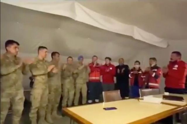 Sosyal medya hesabından, "Gürbulak Sınır Kapısı Sahra hastanesi Ağrı UMKE/ Ağrı 112 ve Mehmetciğimiz saat 21.00'de alkış yaptılar.