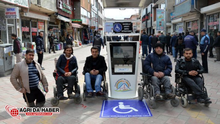 Ağrı'nın Doğubayazıt Belediyesince, ilçede kurulan iki istasyonla engellilere akülü araçlarını şarj etme olanağı sağlandı.