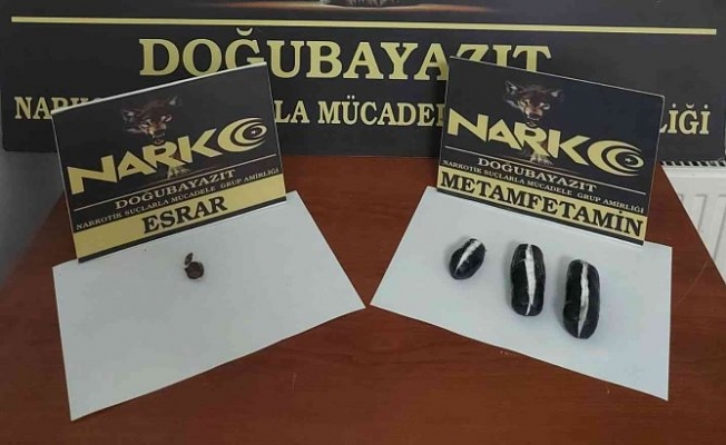 Edinilen bilgilere göre, Ağrı Narkotik Suçlarla Mücadele Şube Müdürlüğü ekipleri, İran uyruklu F.A.'nın İran'dan Doğubayazıt'a giriş yaptığını tespit etti. F.A.'yı takibe alan ekipler, şahsı ilçe sınırları içinde yakaladı. Doğubayazıt Doktor Yaşar Eryılmaz Devlet Hastanesi'nde şüphelinin yapılan sağlık kontrolünde midesinde yabancı cisimler olduğu tespit edildi. Cisimler doğal yolla çıkartıldıktan sonra yapılan kontrolde 3 paket halinde 124,9 gram metamfetamin ve 1 paket 4,65 gram reçine esrar olduğu değerlendirilen madde ele geçirildi. "Uyuşturucu veya uyarıcı madde ticareti yapma veya sağlama" suçundan gözaltına alınan F.A., çıkarıldığı mahkemece tutuklandı.