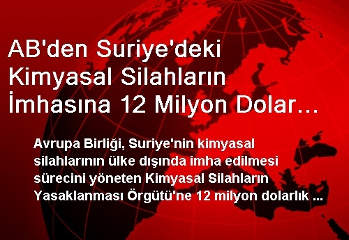 Avrupa Birliği, Suriye'nin kimyasal silahlarının ülke dışında imha edilmesi sürecini yöneten Kimyasal Silahların Yasaklanması Örgütü'ne 12 milyon dolarlık bağışta bulundu.AB daha önce de bu projeye 22 milyon dolarlık destek vermişti.