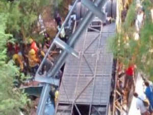 Akabinde, 60 yolcu taşıdığı belirtilen otobüsün 20 metre yükseklikteki köprüden düştüğü belirtildi.