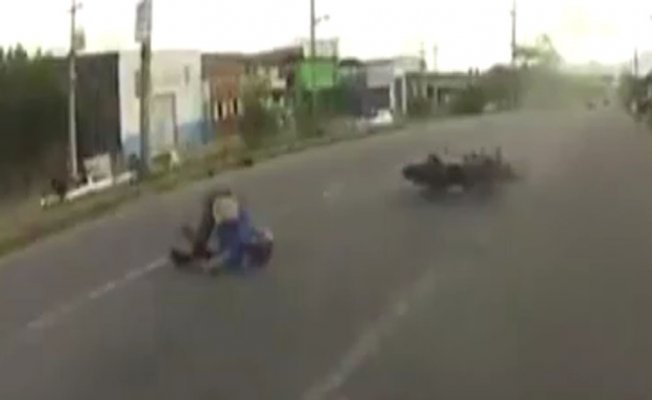 Trafiğe aldırış etmeyen iki motosikletli gaza bastıkça bastı. Ardından da kaza geldi. Aracın hakimiyetini kaybeden şahıs, sağa sola yalpaladıktan sonra yere düşüp metrelerce takla atarken motosiklet de savruldu. Ağır yaralanan adam hastaneye kaldırılırken, kaza anı anbean kask kamerasına yansıdı.