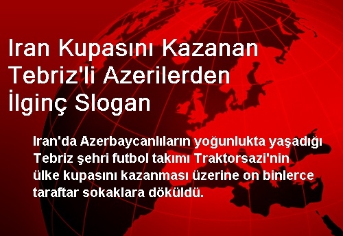 Iran'da Azerbaycanlıların yoğunlukta yaşadığı Tebriz şehri futbol takımı Traktorsazi'nin ülke kupasını kazanması üzerine on binlerce taraftar sokaklara döküldü. Bakü kaynaklı APA haber ajansının Iranlı kaynaklarına istinaden yaydığı habere göre taraftarlar, ellerinde Azerbaycan bayraklarıyla ''Tebriz, Bakü, Ankara, biz hara, Fars hara'', "Azerbaycan var olsun, istemeyen kör olsun",'' Türk dilinde medrese, olmalıdır herkese '' gibi sloganlar atarak gecenin ilerleyen saatlerine kadar sokaklarda yürüdüler. Iran'da yaşayan milyonlarca Azerbaycan Türkünün simgesi olarak gösterilen ve söz konusu kupayı tarihinde ilk kez kaldıran Traktorsazi , finaldeki rakibi Mis takımını tek golle geçerek Asya Şampiyonlar Ligi'nde mücadele etme hakkı da kazandı.