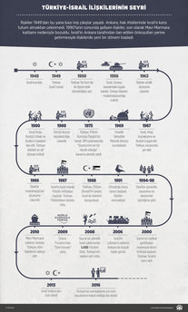 Türkiye, 14 Mayıs 1948'de ilan edilen İsrail devletini, 28 Mart 1949'da tanıdı. Tel Aviv yönetimini tanıyan ilk ülkelerden olan Türkiye, münasebetlerini karşılıklı çıkar, insan hakları ve ülkelerin egemenlik haklarına saygı temelinde şekillendirdi. Türkiye'nin İsrail nezdindeki diplomatik faaliyetleri 7 Ocak 1950'de elçilik olarak açılan Tel Aviv temsilciliğine ilk misyon şefinin atanmasıyla başladı.