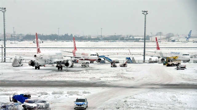 Kar yağışı ve olumsuz hava koşulları nedeniyle Atatürk Havalimanı'ndan yapılan uçuş seferlerinde aksamalar meydana geldi. Uçuşların iptali nedeniyle bazı yolcular otellere yerleştirilirken, bazıları ise terminalde sabahlamak zorunda kaldı. Sabah saatlerinde uçuşlara hazırlanan uçakların kapıları, gece etkili olan kuvvetli rüzgar ve buzlanma nedeniyle açılmadı. Görevlilerce kapıların açılması için uçaklara de-icing (buzlanmaya karşı özel sıvı) işlemi uygulandı. Uçuşların iptali dolayısıyla yolcuların valizleri ise apronda üstü kapatılarak bekletildi. Sabiha Gökçen Havalimanı'nda iniş ve kalkışlarda sıkıntı yaşanmazken, Atatürk Havalimanı'nda ise uçuşların 40-45 dakika gecikmeli olarak gerçekleştirildiği öğrenildi.