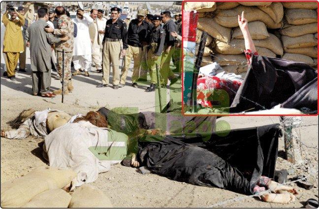 Pakistan polisinin ısrarla «Çeçen militan» ya da «El-Kaide şehid bombacısı» yalanı kameralara yakalanmıştı ve «yerde yatan 2 yaralı kadın birbirlerinin ellerini çaresizlikle tutarken bir diğer kadın son bir umutla elini kaldırarak yardım istiyordu. Ne yazık ki hiç bir sembol yada işaret anlamına gelmeyen bu talebi polis çetesinin yağmur gibi kurşunu ile karşılık gördü.