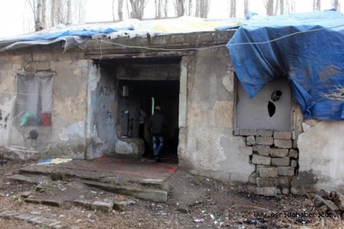 Suriye’deki iç savaştan kaçıp Ağrı’nın Sıtkiye Mahallesi'nde yıkılmak üzere olan 2 odalı derme çatma bir eve yerleşen 7’si çocuk 11 kişilik iki ailenin yaşam hikayesi yürekleri dağladı. Her iki aile banyosu, mutfağı dahi olmayan bu evde temizlik ve hijyen olmaksızın yaşıyor. Isınmak için soba kullanan aile, paraları olmadığından dolayı kömür dahi alamadıklarını, çevreden topladıkları odunlarla ısındıklarını söyledi. Yağmur ve kar suyundan korunmak için bozuk olan damlarını branda ile kapatan ailelerin göğüs gerdiği zorluklar, yürekleri burkuyor.