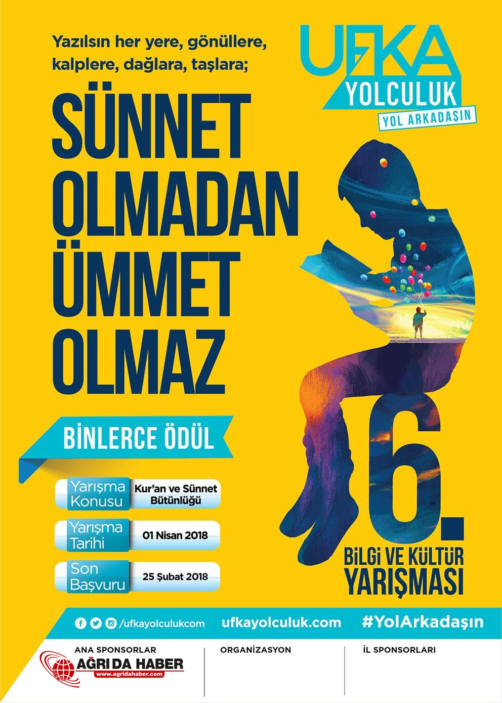 “Sünnet Olmadan Ümmet Olmaz” temasıyla 3 dil ve 11 ayrı kategoride düzenlenecek 6. Ufka Yolculuk Kültür Yarışması'nın 14 Kasım 2017 tarihinde başlayan kayıtları, 04 Mart 2018 tarihine kadar devam edecek.