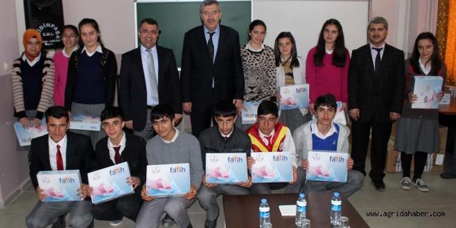 Ağrı İl Milli Eğitim Müdürü Hatem Dursun, “FATİH Projesi” kapsamında öğretmen ve öğrencilere tablet bilgisayar dağıttı.