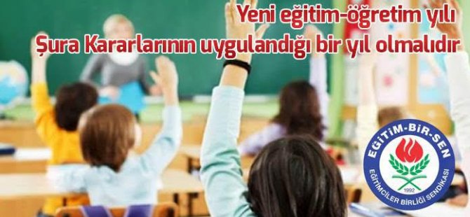 2015-2016 eğitim-öğretim yılı, yaklaşık 17 milyonu aşkın öğrencinin ve 896 bin öğretmenin sınıflarla buluşmasıyla başlıyor. Toplu sözleşme kazanımlarının pozitif etkisiyle başlayan bu yılın Milli Eğitim Bakanlığı’nda geleceğe ilişkin sorumlulukların konuşulduğu; şura kararlarının uygulandığı, müfredatın öze dönüşe imkan ve fırsat verdiği bir eğitim-öğretim yılı olmasını diliyoruz.