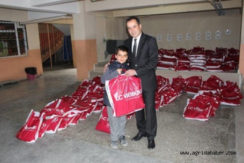 Kızılay Şube Başkanlığı tarafından bin 300 fakir öğrenciye yönelik yapılan giyim kampanyası kapsamında Selçuk Ortaokulu’nda okuyan 500 öğrenciye Milli Eğitim Müdür Yardımcısı Bekir Taştan, Milli Eğitim Şube müdürleri Taner Pakır ve Nevzat Kaya, Ağrı Kızılay Şube Başkanı Fahrettin Selçuk, Kızılay Ağrı Şube Müdürü Feramuz Alparslan ve okul yöneticileri tarafından giyim paketi dağıttı.