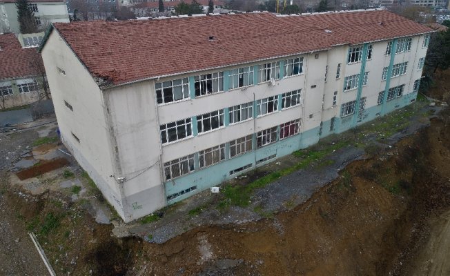Şişli Endüstri Meslek Lisesi’nin arazisinde yaşanan kayma tehlikesi sonrası son durum havadan görüntülendi. Görüntülerde yaşanan tehlikenin boyutu da gözler önüne serildi.