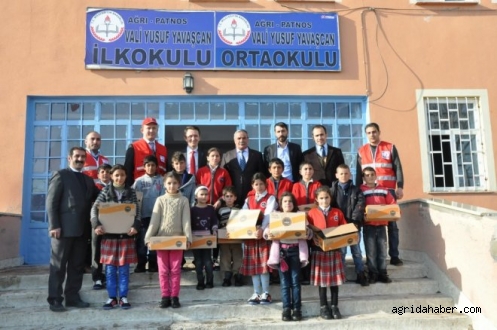 Ağrı'nın Patnos ilçe Kızılay Şubesi, Vali Yusuf Yavaşcan İlkokulu ve Ortaokulunda eğitim gören ihtiyaç sahibi 61 öğrenciye ayakkabı yardımında bulundu.
