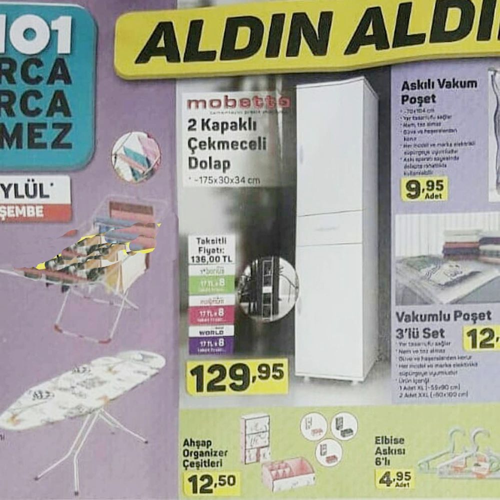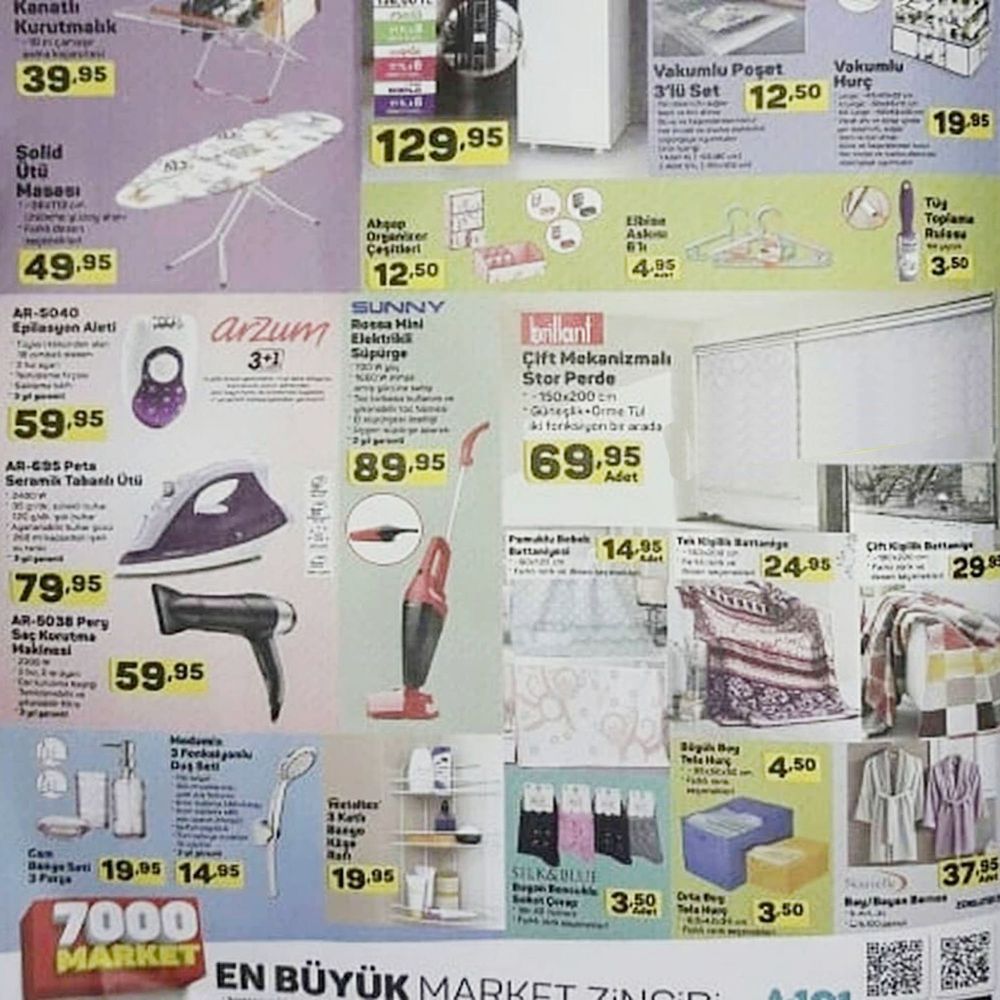 A101 aktüel 20 Eylül 2018 kataloğunda yer alan indirimli ürünler saymakla bitmiyor. Bu indirimli ürünler arasında dikkat çeken ürünlerden birisi de Stor Perde. Güneşlik ve tül seçeneklerinin ikisini bir arada bulunduran Brillant Çift Mekanizmalı Stor Perde 69,95 TL. Solid Ütü Masası 49,95 TL. Çamaşır Kurutmalığı 39,95 TL. 20 Eylülde A101 e gelecek ürünler arasında mobilya ürünleri de yer alıyor. Mobetto 2 Kapaklı Çekmeceli Dolap 129,95 TL. Ahşap Organizer çeşitleri 12,50 TL. Arzum Epilasyon Aleti 59,95 TL. Arzum Seramik Tabanlı Ütü 79,95 TL. Sunny Elektrikli Süpürge 89,95 TL. Agiss Gold Isıtıcılı Ağda Seti 22,95 TL. Agiss Siyah Nokta Temizleyici Bant 5,75 TL. Agiss Tüy Dökücü Krem Sprey 10,95 TL. Agiss 100ml Ağda Kartuşu 4,45 TL. A101 20 Eylul 2018katalogunda züccaciye ürünlerine de yer verilmiş durumda. Porland Tekli Porselen Ürünler 4,50 TL. Tava, tepsi ve sahandan oluşan Cem Nero 3’lü Set 24,95 TL. Ayaklı Kek Fanusu 29,95 TL. Kelebek Desenli Cam Kavanoz 5,50 TL. Nofrost Saklama Kabı 3,95 TL. 20 Eylül A101 aktüel ürünler kataloğunda sayamadığımız kadar ço çeşitte indirimli ürün müşterilere sunuluyor olacak.
