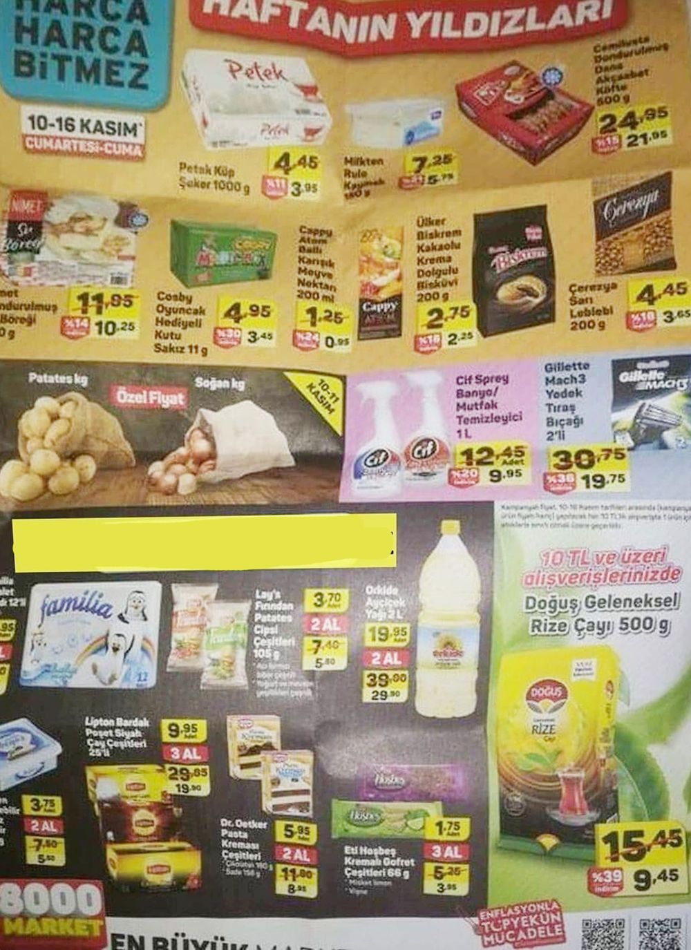 A101 aktüel 8 Kasım 2018 kataloğunun ikinci sayfasını incelediğimizde bizleri temel tüketim malzemeleri karşılıyor. Peros Toz Çamaşır Deterjanı çeşitleri 31,95 TL. Peros Çamaşır Suyu 7,95 TL. Fest Sıvı Sabun 8,95 TL. Peros Ultra Çamaşır Suyu 15,95 TL. Peros Arap Sabunu 5,45 TL. Peros Konsantre Yumuşatıcı çeşitleri 9,45 TL. Peros Yüzey Temizleyicisi 6,95 TL. 8 Kasim A101 katalogunun ikinci sayfasında yer alan ürünler arasında gıda ürünleri de yer alıyor. Dana Kangal Sucuk 15,95 TL. Sütaş Tereyağı 13,95 TL. Sütaş Laktozsuz Süt 1,50 TL. Reçel çeşitleri 9,95 TL. A101 de bu hafta müşterilere sunulan indirimli ürünler bu kadarla sınırlı değil. 10-16 Kasım 2018tarihleri arasında geçerli olacak Haftanın Yıldızları kataloğu ile de müşterilere onlarca kampanyalı ürün sunuluyor olacak. Dondurulmuş Dana Akçaabat Köfte 21,95 TL. Petak Küp Şeker 3,95 TL. Cif Banyo Mutfak Temizleyici 9,95 TL. Orkide 2lt Ayçiçek Yağı 29,90 TL. Lipton bardak Poşet Siyah Çay çeşitleri 19,90 TL. Ayrıca 10 TL ve üzeri yapacağınız alışverişlerde 15,45 TL değerindeki Doğuş Geleneksel Rize Çayı sadece 9,45 TL.