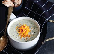 ını tencerede eritin ve unu kavurun. Küçük parçalar şeklinde kesilmiş brokoli, kıyılmış soğan ve kıyılmış sarımsağı ekleyip karıştırın. Süt, krema ve tavuk suyunu ekleyerek pişirin. Piştikten sonra tuz, karabiber ve kekikle tatlandırın. Blender’la ezerek pürüzsüz bir kıvama getirin. üzerine rendelenmiş cheddar peyniri ve parmesan peyniri serperek servis yapın.