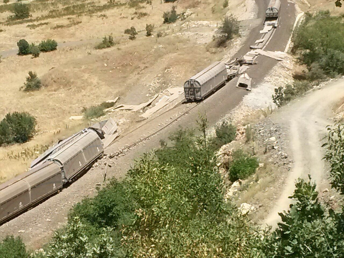 Elazığ'ın Palu ilçesinde PKK'lı teröristlerce raylara döşenen el yapımı patlayıcının infilak ettirilmesi sonucu Elazığ-Tatvan seferini yapan yük treninin 9 vagonu devrildi.