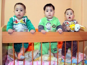 Ülkelerindeki iç savaştan kaçarak Türkiye'ye sığınan ve Elazığ'da yaşayan 7 çocuklu Suriyeli ailenin 10 aylık üçüzleri, hayata gülümseyerek bakıyor.