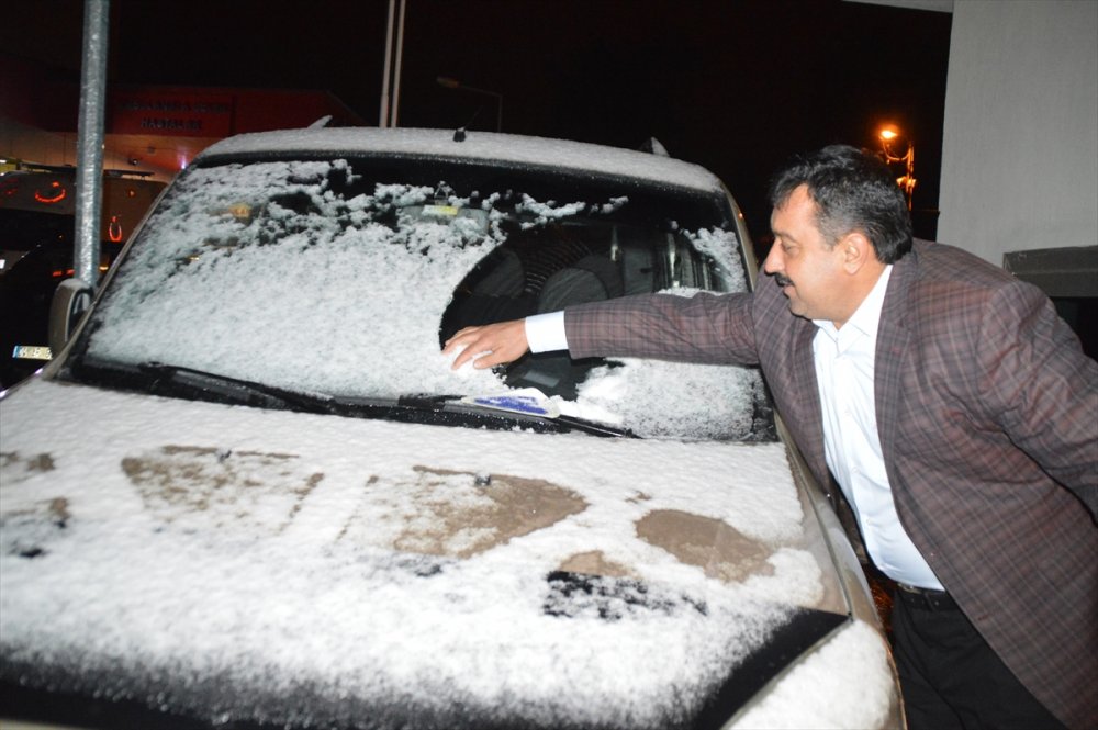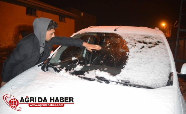 Ağrı'nın Eleşkirt ilçesinde günboyu etkili olan sağanak, akşam saatlerinde yerini kar yağışına bıraktı. Etkili kar yağışı nedeniyle araçların üzeri karla kaplandı.
