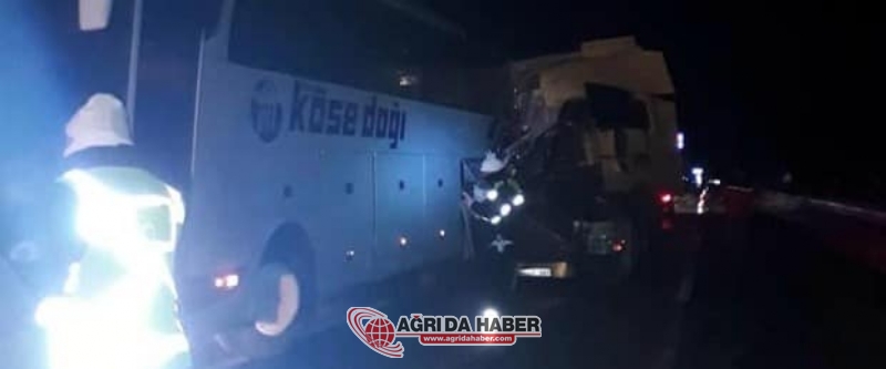 Alınan bilgiye göre, D-100 kara yolundan Bolu yönüne giden İlhan Demir idaresindeki 05 LE 261 plakalı tır, Gerede Çayören köyü mevkisinde yol kenarında duran Özgür İmrağ yönetimindeki Ağrı Köse Dağı Turizme ait 34 JM 3989 plakalı yolcu otobüsüne çarptı.