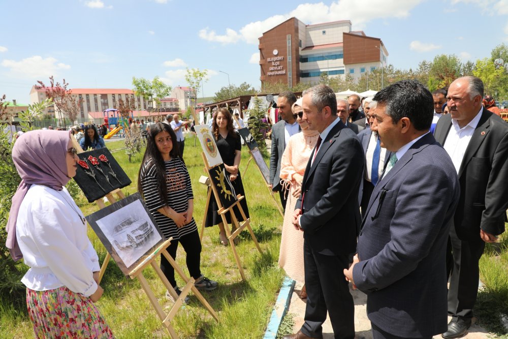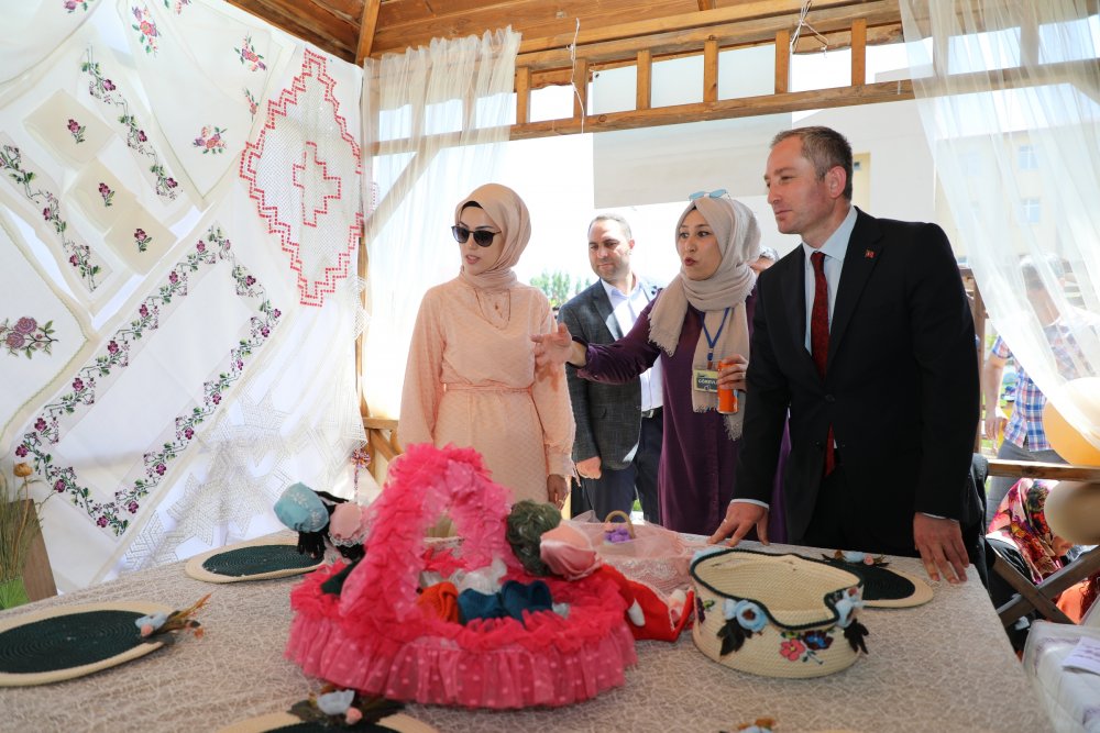 İlçe Halk Eğitim Merkezi Müdürlüğü tarafından 15 Temmuz Şehitleri Parkında düzenlenen serginin açılışına İl Milli Eğitim Müdürü Hasan Kökrek, İlçe Belediye Başkan Vekili Celal Çarkçı, İlçe Milli Eğitim Müdürü Burhan Kurt, AK Parti Eleşkirt İlçe Başkanı Taner Kazak, Milli Eğitim Şube Müdürü Mehmet Özmüş, Eleşkirt Kaymakamı Murat Güneş’in eşi Elif Hatice Güneş, kurum yetkilileri ve vatandaşların katıldı. Sergiyi gezen İl Milli Eğitim Müdürü Hasan Kökrek, kursiyerlerin el emeği göz nuru ürünlerini inceleyerek ürünler hakkında ilgililerden bilgi aldı. Emeği geçenlere teşekkür eden Kökrek, büyük emeklerle harika ürünlerin ortaya çıktığı sergideki ürünlerin göz kamaştırdığını belirtti.