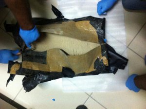 Ekipler, aramada, yolculardan B.E'ye ait valizin taban kısmına gizlenmiş 3 kilo 950 gram eroin buldu.