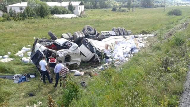 Alınan bilgiye göre, Veysel Pembe idaresindeki 76 DF 756 plakalı tır, Erzincan-Sivas karayolunun 65. kilometresi Refahiye ilçesi yakınlarında şarampole devrildi.