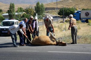 ERZİNCAN- Erzincan’da tırın büyükbaş hayvan sürüsüne çarpması sonucu 2 inek telef oldu.