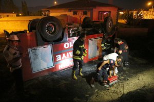 Erzincan’da yangına müdahale eden itfaiye aracının devrilmesi sonucu, 2 itfaiye eri yaralandı.