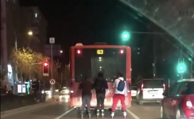 Edinilen bilgiye göre, Bornova ilçesinde akşam saatlerinde belediye otobüsünün arkasına patenli 3 çocuk takıldı. Patenci çocuklar, trafiğin yoğun olduğu sırada, otomobillere aldırış etmeden dakikalarca tehlikeli yolculuğunu sürdürdü. Yaşanan bu olay, başka bir sürücü tarafından saniye saniye görüntülendi.