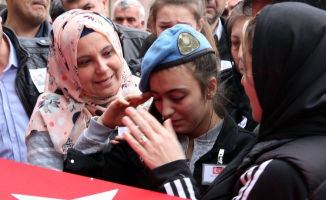 Afrin’de yürütülen Zeytin Dalı Harekatı’nda bölücü terör örgütü ile girilen çatışmada şehit düşen Eskişehirli Yarbay Mithat Dunca’nın 13 yaşındaki kızı Zeynep Naz Dunca, tabut üzerindeki bereyi takarak, babasına asker selamı ile veda etti.