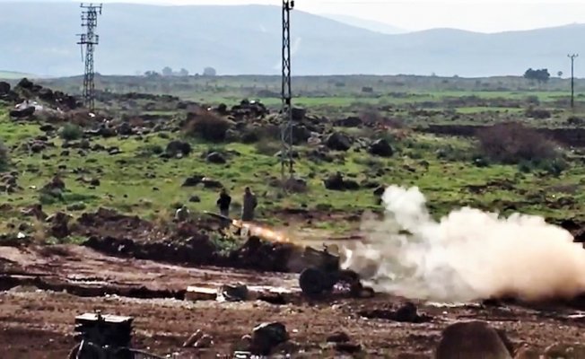 Zeytin Dalı Harekatı kapsamında askeri birliklerden teröristlerin üzerine Çok Namlulu Roketatar (ÇNRA) atışları sürüyor.