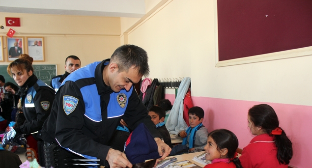 İl Emniyet Müdürlüğü Toplum Destekli Polislik Şube Müdürlüğü ekipleri okul ziyaretinde bulunarak öğrencilere atkı ve bere hediye etti.