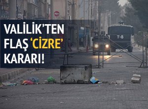 Şırnak Valiliği, dün saat 19.00’dan itibaren Cizre’de ilan ettiği sokağa çıkma yasağının bu Sabah kaldırıldığını açıkladı. Açıklamada, "İlimiz Cizre ilçe merkezinde 13.09.2015 günü saat 19:00’da ilan edilen sokağa çıkma yasağı 14.09.2015 Pazartesi günü (bugün) saat 07:00 itibariyle kaldırılmıştır. Kamuoyuna saygıyla duyurulur" denildi.