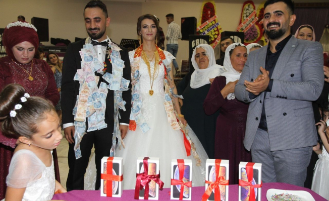 Damadın ağabeyi Mehmet Ertaş, kardeşine piyasa değeri toplamda 50 bin lirayı bulan 5 adet son model iPhone XS Max telefon taktı.