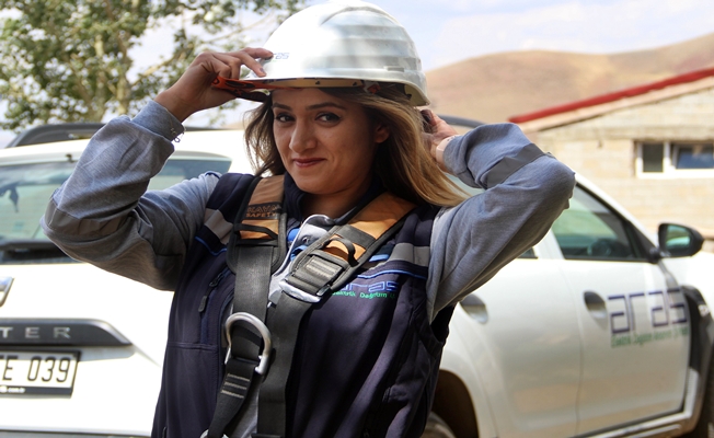 Erzurum Aras Elektrik Dağıtım Anonim Şirketinde (EDAŞ) çalışan Elektrik-Elektronik Mühendisi Edanur Doğan, güç gerektirdiği için genellikle erkeklerin çalıştığı meslekte bir kadın olarak onarım ve bakımların sorumluluğunu üstleniyor.