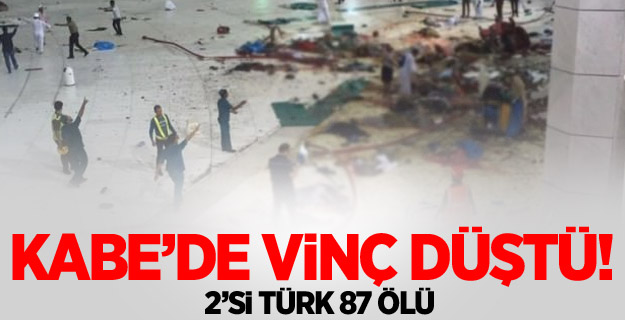 Suudi Sivil Savunma Teşkilatı, Kâbe'deki vinç kazasında en az 87 kişinin öldüğünü 184 kişinin yaralandığını açıkladı.