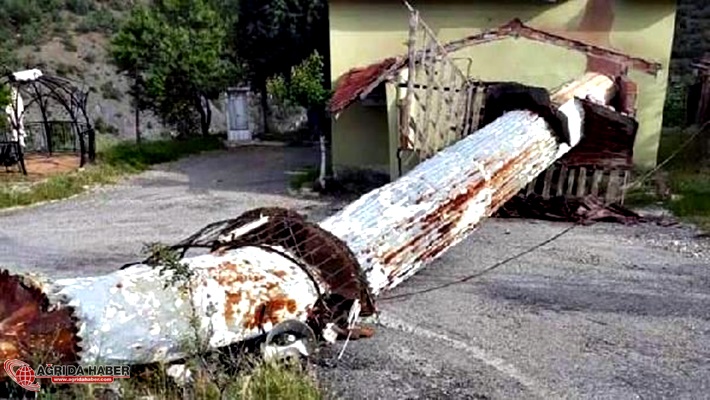 İlçede etkili olan şiddetli rüzgara dayanamayan yaklaşık 10 metre uzunluğundaki metal minare, büyük bir gürültüyle yıkıldı.