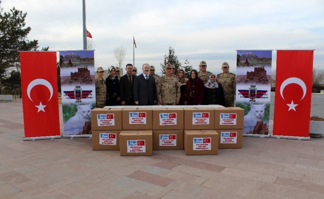 Vanlı kadınlar, Afrin bölgesinde yürütülen Zeytin Dalı Harekatına katılan Mehmetçik için ördüğü atkı ve bereleri Jandarma Asayiş Kolordu Komutanlığına teslim etti.