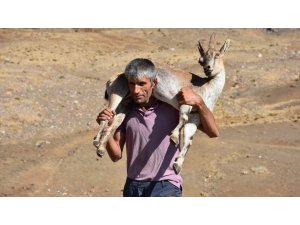 Adıyaman'da bir çoban, hayvanlarını otlatırken yaralı bulduğu dağ keçisini tedavi ettirebilmek için 17 kilometre sırtında taşıdı.