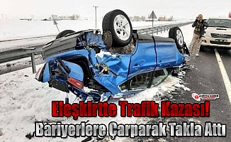 Eleşkirtte Trafik Kazası! Bariyerlere Çarparak Takla Attı