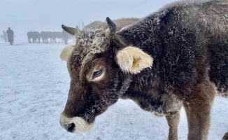 Ağrı'da Sibirya soğukları nedeniyle hayvanlar buz kesti!